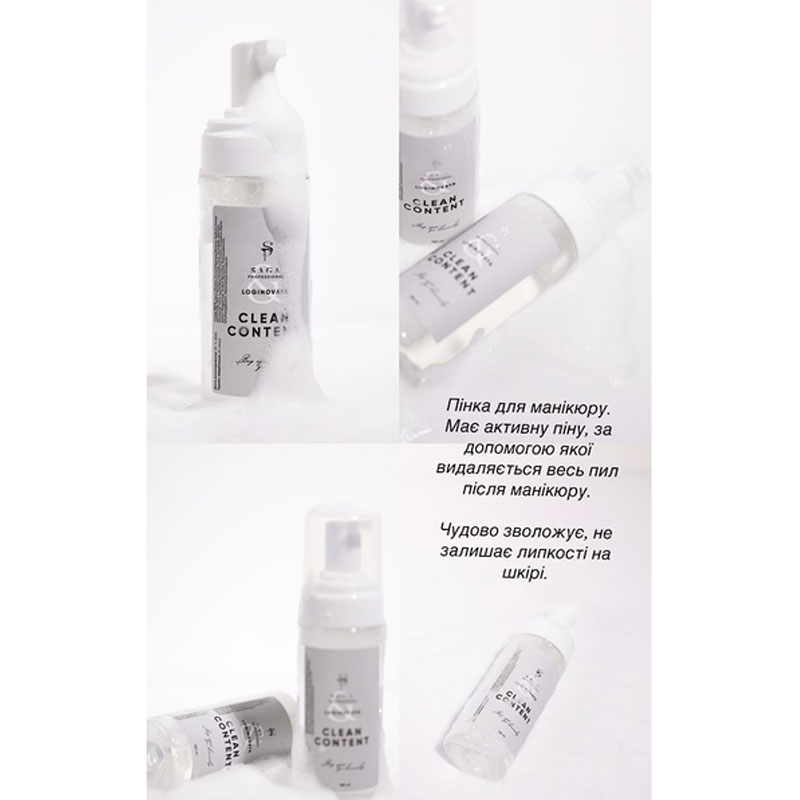 Saga Professional Clean Content пенка для рук очищающая делает дерму мягкой, как после использования масла, но без жирного блеска. Поддерживает мягкость кожи и придает легкое натуральное сияние во время фото или записи видео ручек клиента. Создает красивый финиш, делает руки и ногти ухоженными, удаляет следы пыли и не оставляет мутности на топовом покрытии, создает безупречный результат.
