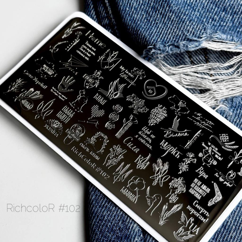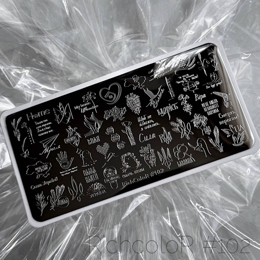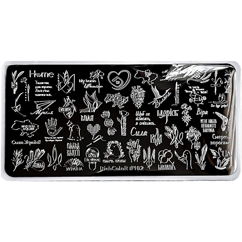 Пластина изготовлена из прочного металла. Она гладкая и блестящая, что позволяет наносить высокоточные рисунки с идеальной проработкой даже самых мелких деталей рисунка. Рисунки можно комбинировать, наносить их разными цветами лаков, добавлять стразы, жемчуг, бульйонки, а также любые другие декоративные элементы.