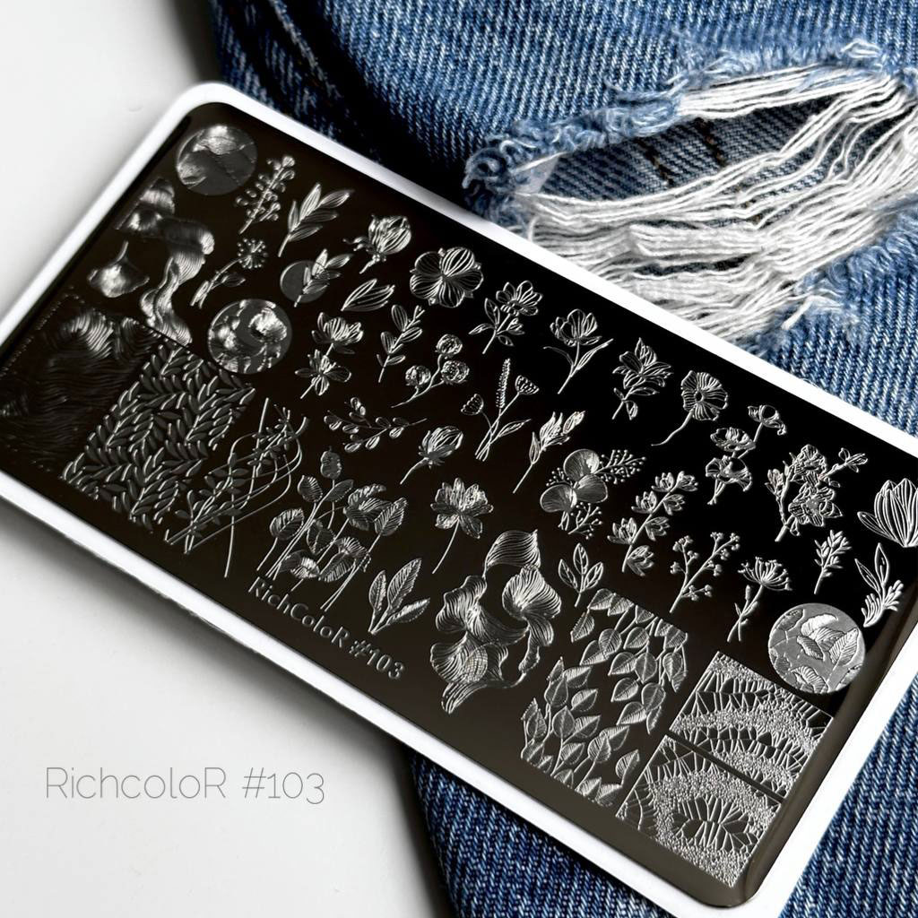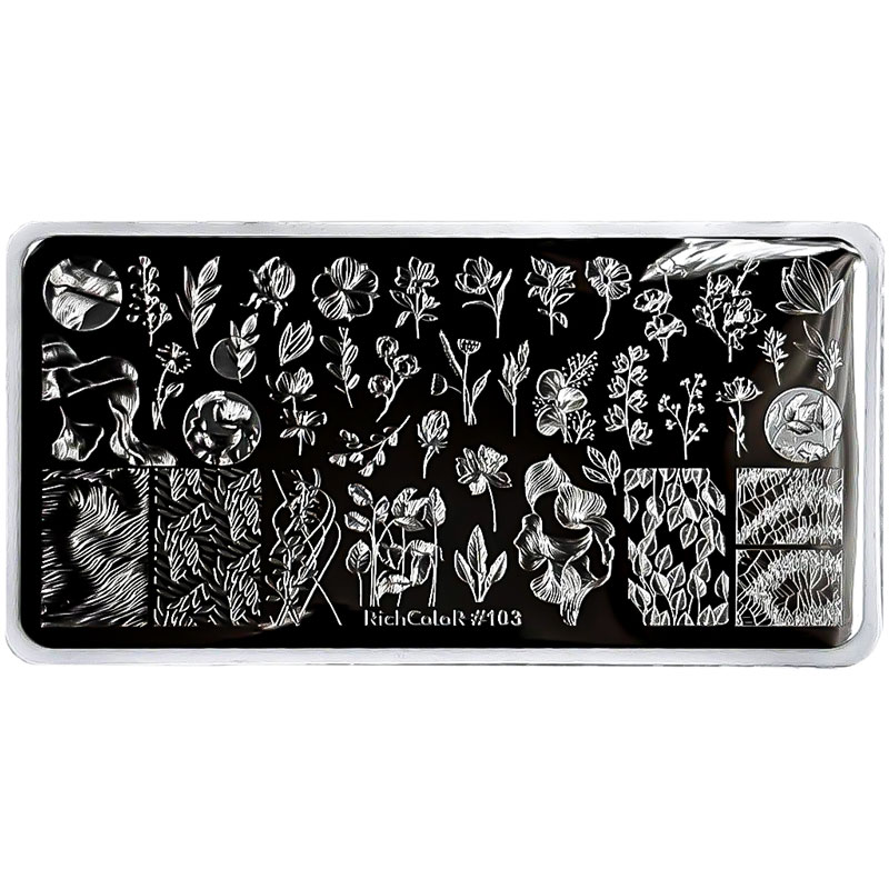 Пластина изготовлена из прочного металла. Она гладкая и блестящая, что позволяет наносить высокоточные рисунки с идеальной проработкой даже самых мелких деталей рисунка. Рисунки можно комбинировать, наносить их разными цветами лаков, добавлять стразы, жемчуг, бульйонки, а также любые другие декоративные элементы.
