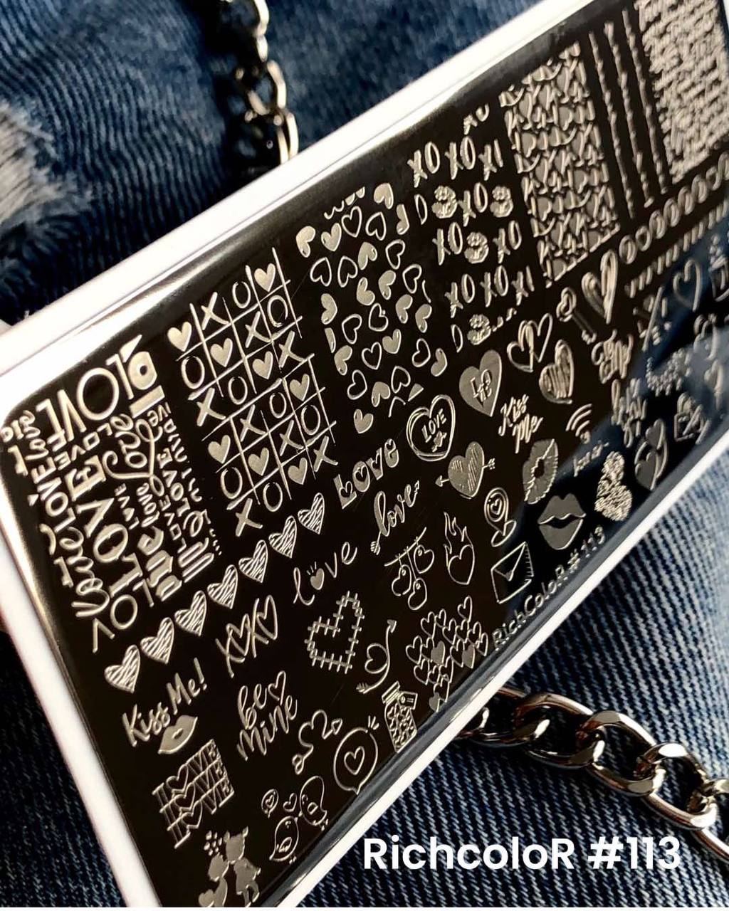 Пластина изготовлена из прочного металла. Она гладкая и блестящая, что позволяет наносить высокоточные рисунки с идеальной проработкой даже самых мелких деталей рисунка. Рисунки можно комбинировать, наносить их разными цветами лаков, добавлять стразы, жемчуг, бульйонки, а также любые другие декоративные элементы.