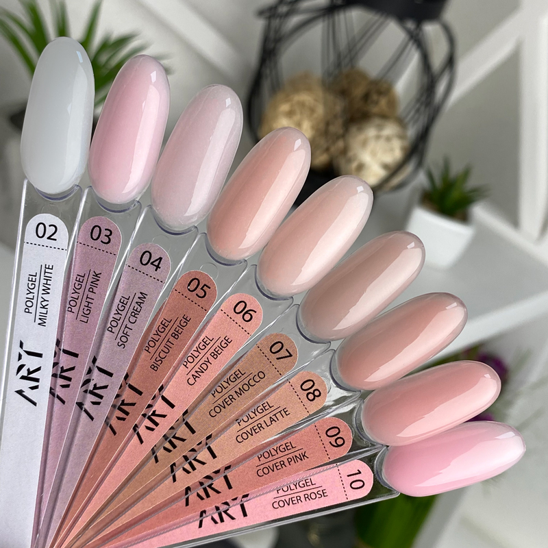 ART PolyGel — качественный материал для наращивания искусственных ногтей. Он объединил в себе все лучшие качества геля и акрила, обладает универсальностью, подходит как для моделирования так и обычного укрепления ногтевой пластины. Полигели ART имеют оптимальную структуру, не зернистые, удобно наносятся и легко выравниваются.