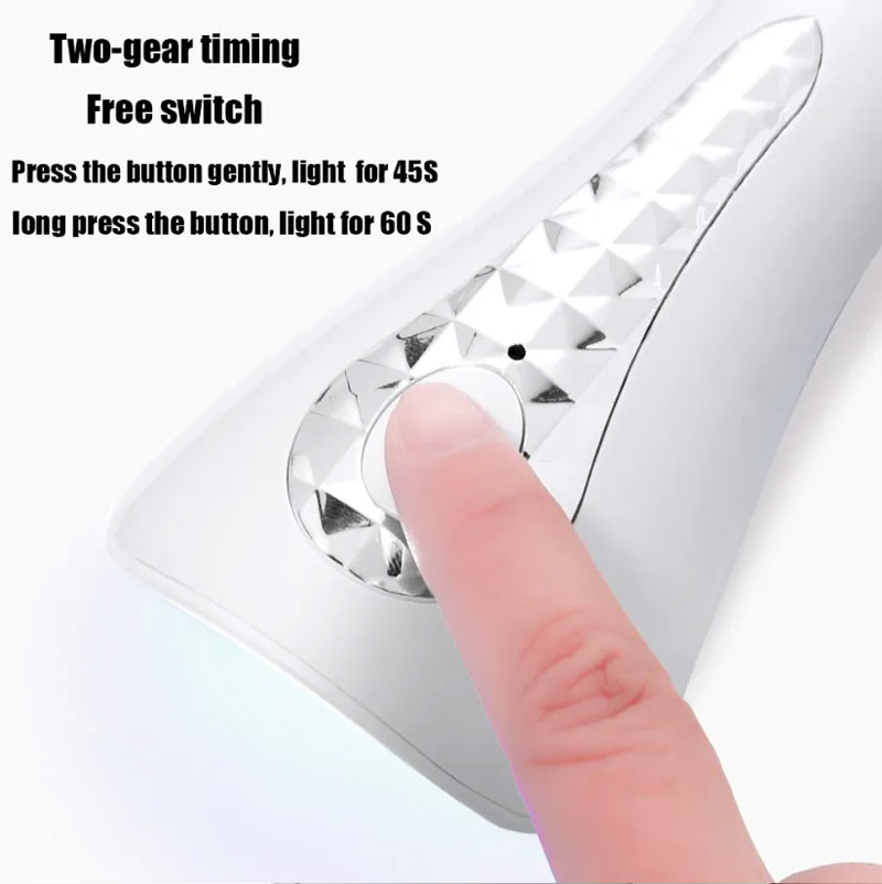 Лампа подходит для сушки всех видов гель-лака и геля, проста в эксплуатации и удобна в применении, за счет компактного размера.