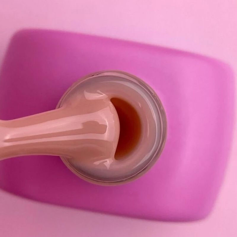 - Для адгезии нанесите Rubber base тонким слоем на всю ногтевую пластину близко к кутикуле и боковым валикам.