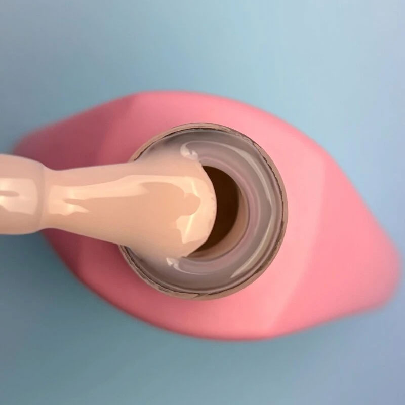 - Подкладку из Rubber Base лучше всего наносить плоской кистью для геля. Движения должны быть утирательными. Прорисовываем все пазухи ногтя и сушим в лампе 60 секунд.