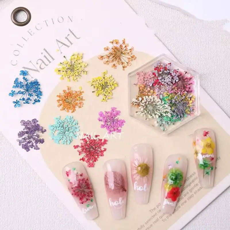Разноцветные маленькие цветы (сухоцветы) для дизайна ногтей в контейнере №3