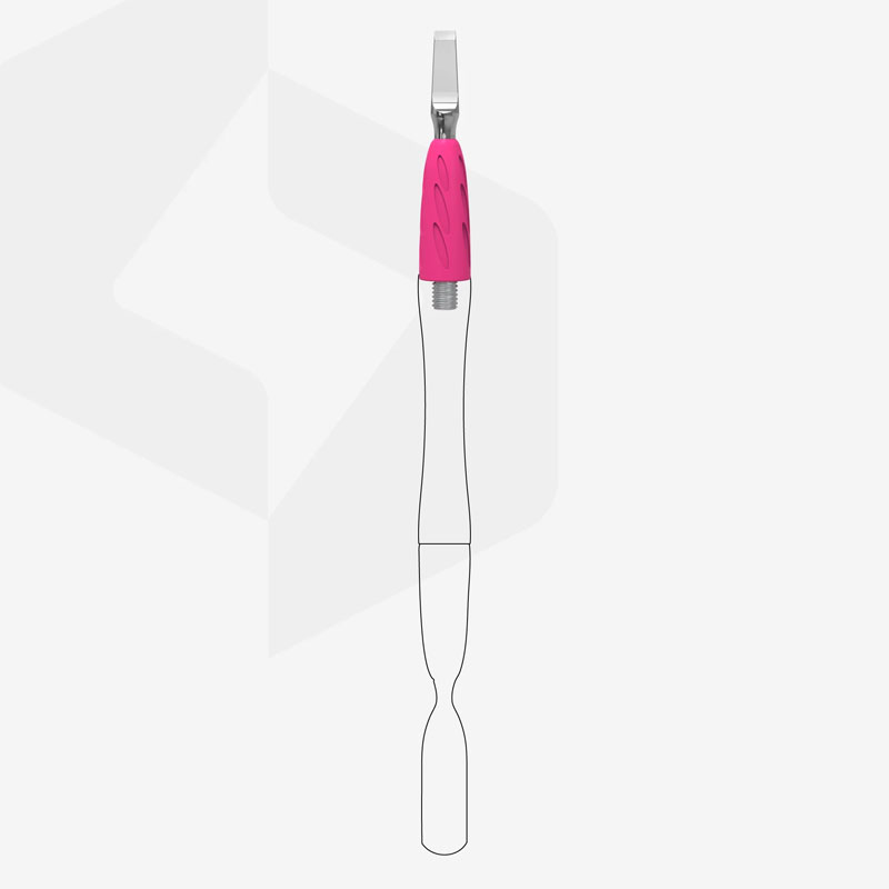 Рабочая часть "лопасть прямая" предназначена для обработки синусов, поднятия грубой и сильно залипшей кутикулы при выполнении маникюра и педикюра.