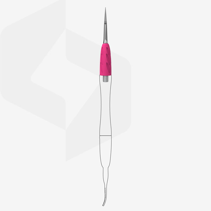 Рабочая часть "пика" имеет изогнутую форму, позволяющую легко очистить зону под ногтем и околоногтевое пространство от различных загрязнений при выполнении педикюра.