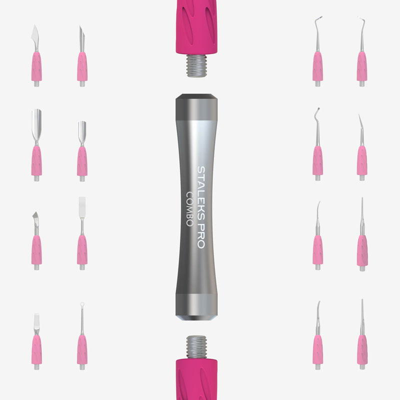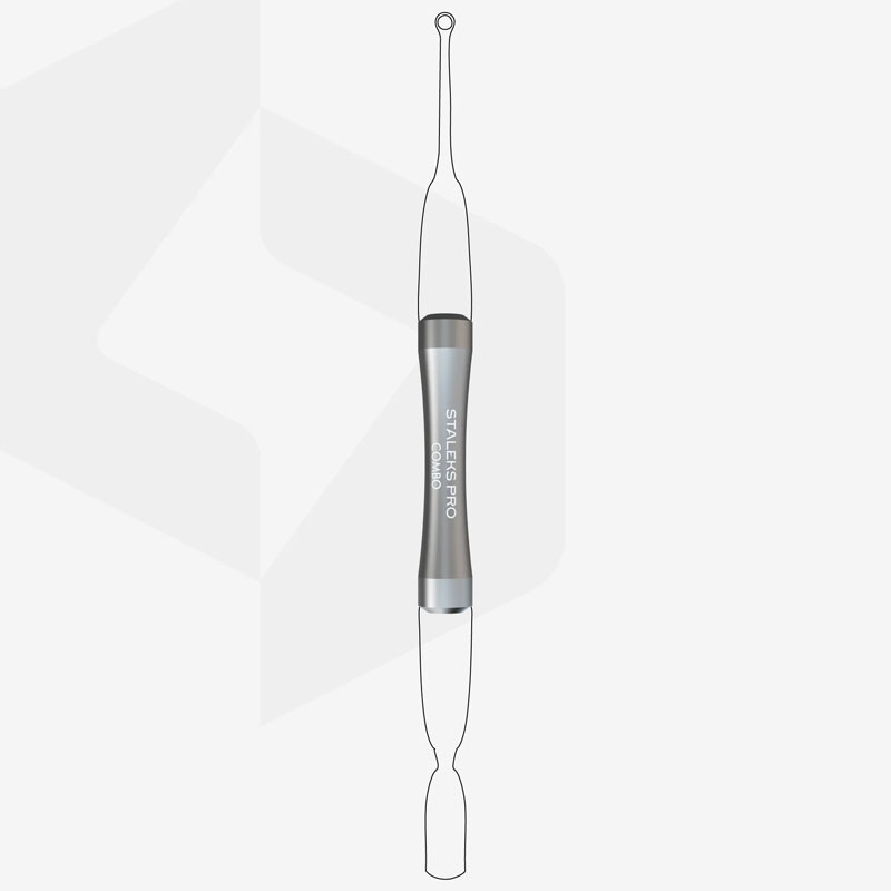 Ручка подходит для любой сменной рабочей части COMBO из серии UNIQ, обеспечивая максимальную универсальность и комфорт. Соберите свою идеальную лопатку, выбрав две сменные рабочие части из серии COMBO UNIQ и просто вкрутив их в ручку. Изящная форма ручки удобно укладывается в руке, предотвращает скольжение и не отблескивает для комфортной работы. Ручка выполнена из высококачественного алюминия, который втрое легче стали, снижает нагрузку на руку мастера даже при длительной работе. Алюминий проходит специальную отделку, которая гарантирует защиту от коррозии и стойкость к любым видам дезинфекции и стерилизации.