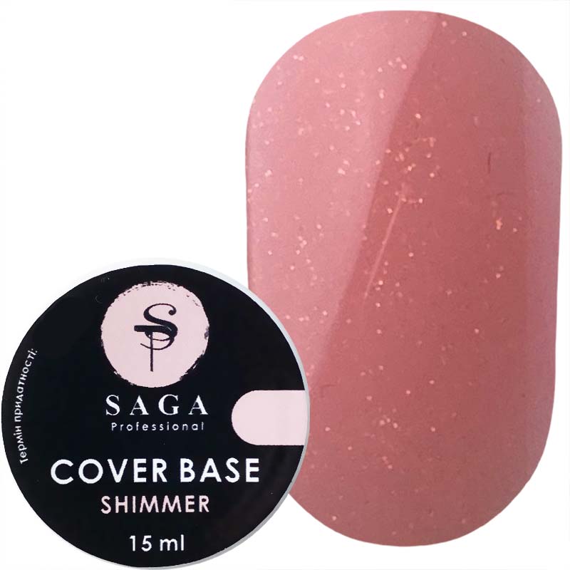 Saga Cover Base Shimmer – камуфлирующая база для гель-лака. Невероятно нежное покрытие с сияющим шиммером не оставит равнодушным ни одного клиента. Станет уместным как для элегантного праздничного образа, так и украсит повседневный маникюр. База имеет оптимальную консистенцию, легко наносится, самовыравнивается. Обладает укрепляющими свойствами, скрывает мелкие визуальные недостатки ногтя.