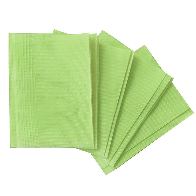 Ламинированные салфетки применяются в медицине, косметологии и так же используются в качестве салфетки на стол при выполнении маникюрных работ. Материал изготовления: бумага + полиэтилен. Благодаря ламинации, они не промокают и не пропускают жидкости.