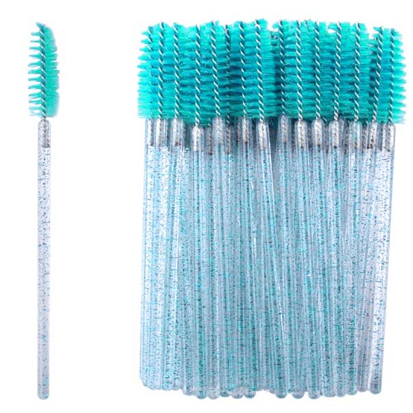 Щеточки для расчесывания ресниц мятные с блестками, 50 шт. в упаковке
