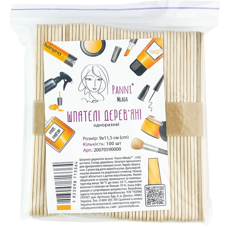 Шпатели деревянные узкие Panni Mlada в пачке, 9х11.5 см, 100 шт