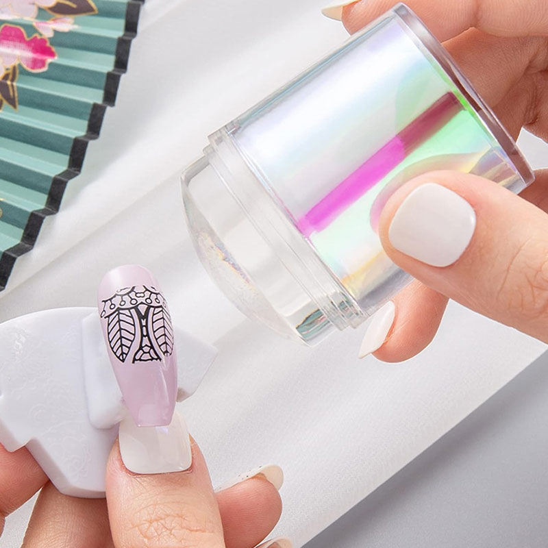 Подушечка штампа невероятно мягкая по всей площади и идеально переносит рисунок на весь ноготь, совершенно не заламывает даже длинные ногти. Благодаря силиконовой подушечке, краска со штампа переносится на ноготь полностью, а на самом штампе ничего не остается, что отображается на яркости рисунка. Подушечка очень плотно сидит в держателе, что предотвращает её выпадание в самый неподходящий момент. Подушечка штампа прозрачная - на ней видно лак любого цвета. Пластиковый корпус полый, поэтому больше не нужно смотреть сбоку и прицеливаться на ноготь - смотреть можно прямо сквозь штамп, это позволяет очень точно переносить рисунок на ноготь.