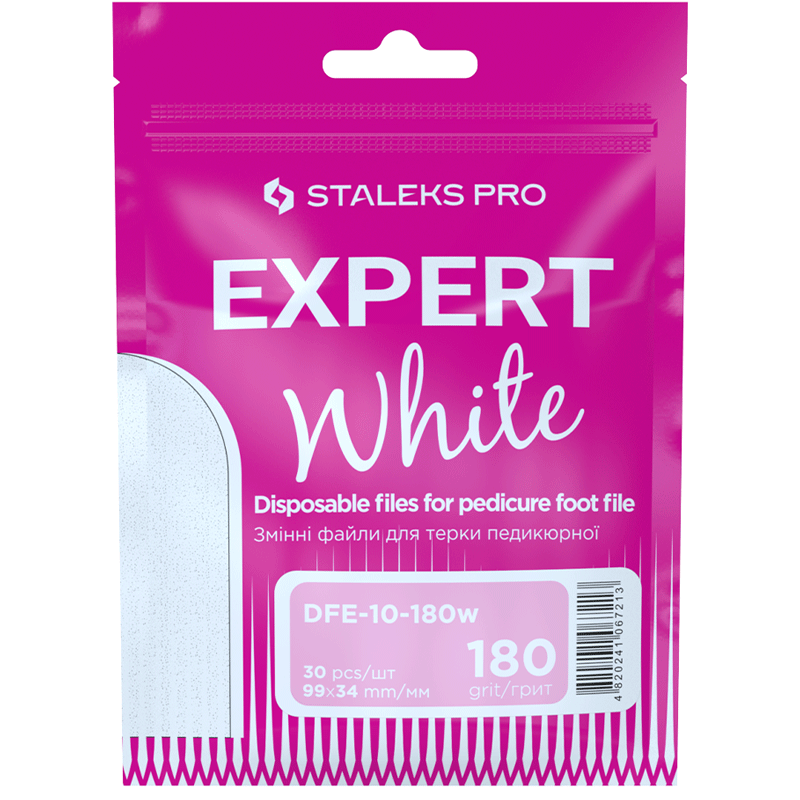 Сменные файлы белые для терки педикюрной 180 грит STALEKS PRO EXPERT 10 30 шт DFE-10-180w