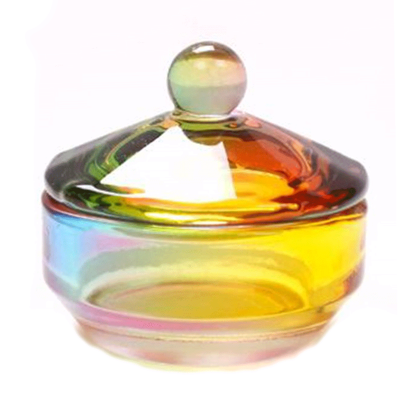 Стаканчик для мономера радужный с крышкой, стеклянный, №003