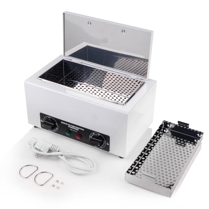 Профессиональный сухожаровой шкаф предназначен для дезинфекции маникюрных и педикюрных инструментов до процедуры, а также для чистки после. Внутренний блок термического стерилизатора изготовлен из нержавеющей стали. Внутри прибора есть специальный съемный контейнер для хранения и стерилизации инструментария.