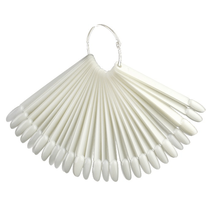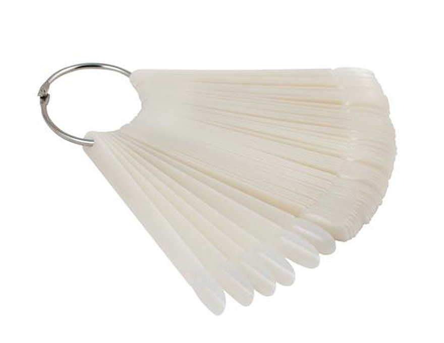 Типсы для образцов на кольце используются для создания цветовых палитр или образцов нейл-арта в маникюрных салонах. Набор включает в себя 50 типс, которые скреплены при помощи металлического кольца. Это позволяет держать все типсы в одном месте и при этом будет удобно их показывать клиенту.