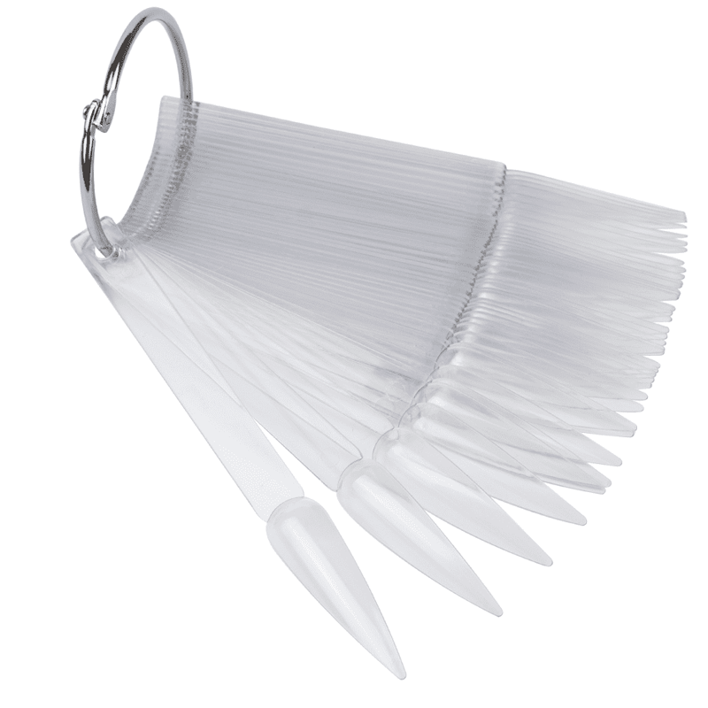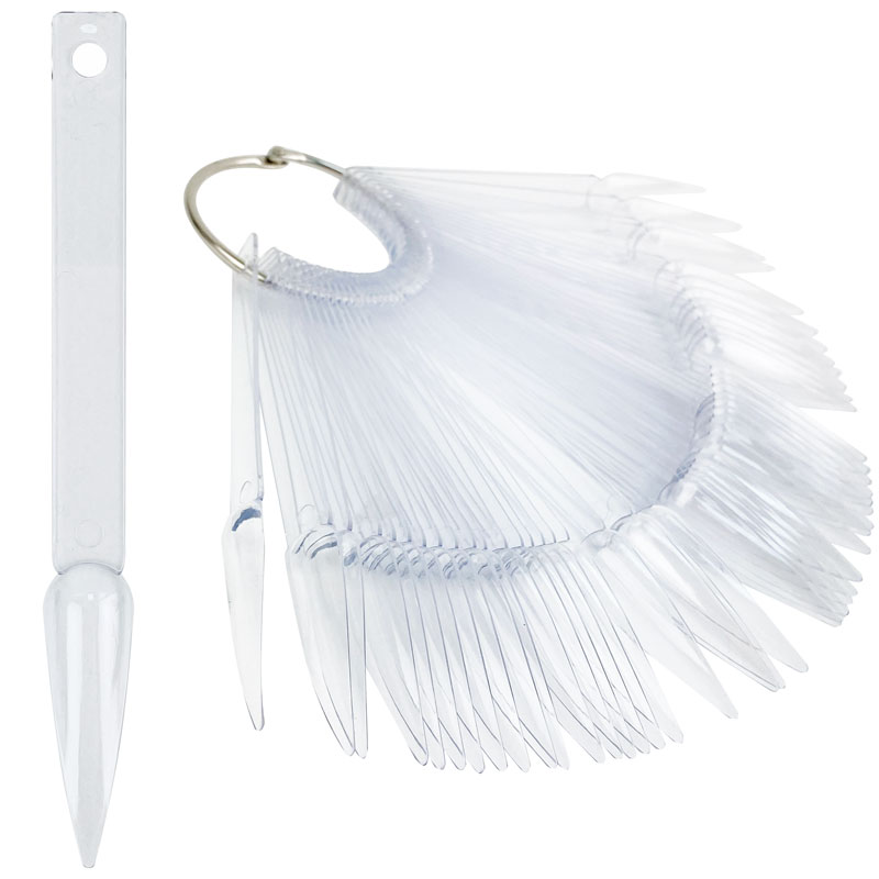 Типсы для образцов на кольце используются для создания цветовых палитр или образцов нейл-арта в маникюрных салонах. Набор включает в себя 50 типс, которые скреплены при помощи металлического кольца. Это позволяет держать все типсы в одном месте и при этом будет удобно их показывать клиенту.