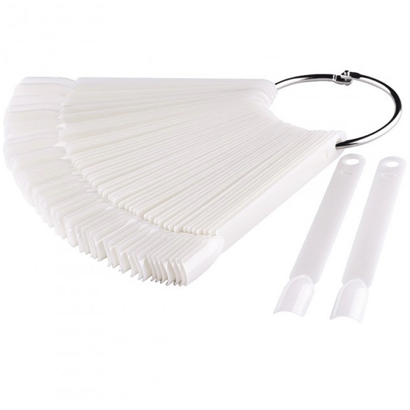 Типсы необходимый атрибут для демонстрации образцов любых декоративных покрытий и отработки разнообразных дизайнов. За счет совоей матовой поверхность, искажение цвета исключено. Для удобства хранения помещены на специальное кольцо. Могут быть использованы в салоне красоты, магазине товаров для маникюра, обучающем центре, студии или на курсах.