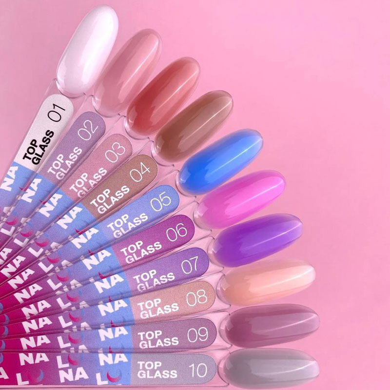 Top Glass – это цветной топ без липкого слоя, который держит блеск до 4-х недель. Топы Glass имеют большую палитру из 10 самых трендовых оттенков на любой вкус.