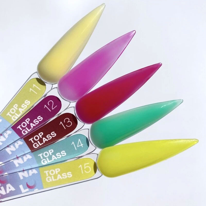 Top Glass – это цветной топ без липкого слоя, держащий блеск до 4 недель. Топы Glass имеют большую палитру из 10 трендовых оттенков на любой вкус.