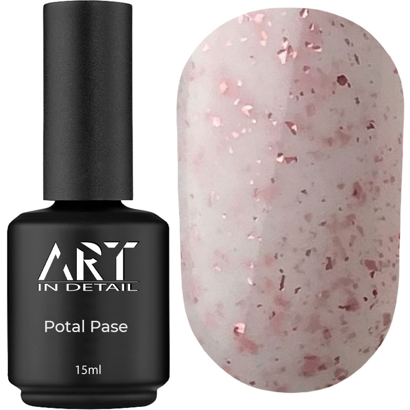 ART Potal Base – це база для гель-лаку , яка успішно виконує функцію основного декоративного покриття та значно прискорює сам процес нейл-дизайну. Особливістю основи з поталлю є унікальна текстура. Поталь є імітацією сусального золота, вона дуже тонка і делікатна. У поєднанні з кольоровою основою баз цей матеріал виглядає дуже красиво.