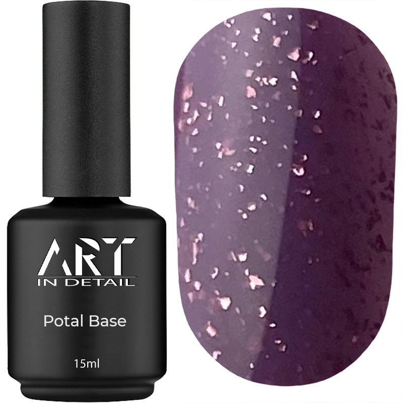 ART Potal Base – це база для гель-лаку , яка успішно виконує функцію основного декоративного покриття та значно прискорює сам процес нейл-дизайну. Особливістю основи з поталлю є унікальна текстура. Поталь є імітацією сусального золота, вона дуже тонка і делікатна. У поєднанні з кольоровою основою баз цей матеріал виглядає дуже красиво.