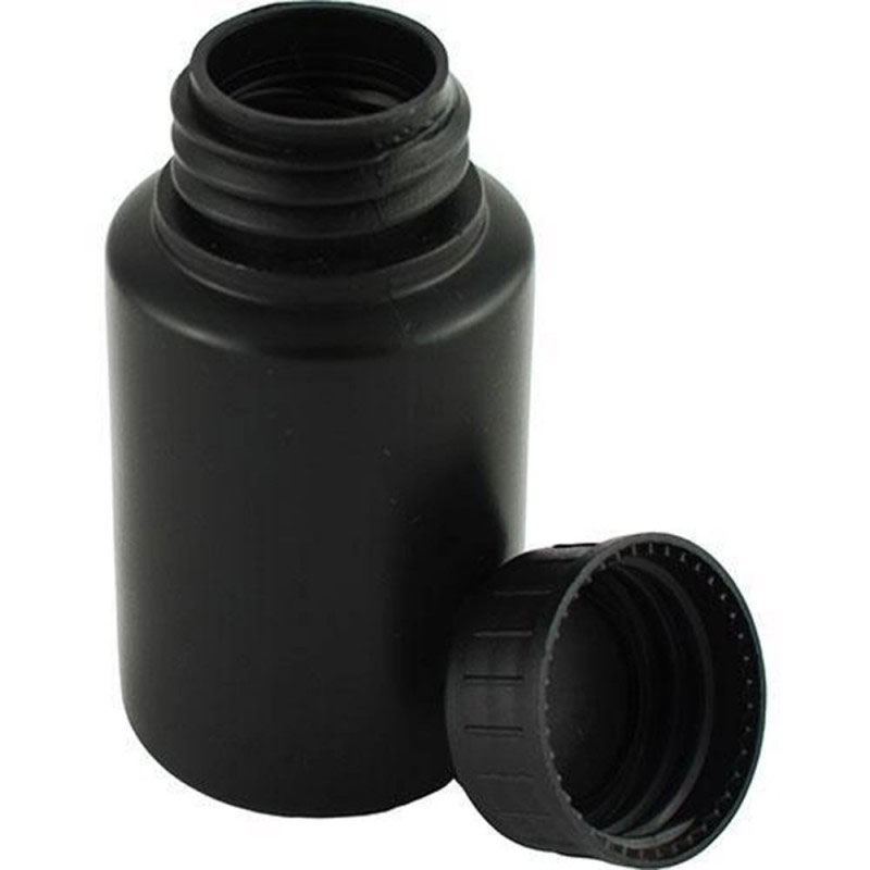 Флакон об'ємом 30 мл виготовлений з чорного матового пластику, що надає йому елегантний вигляд і забезпечує високий рівень функціональності. Ідеально підходить для зберігання порошкоподібних засобів (пігментів, альгінатних масок тощо), а також бази та топу для нігтьової індустрії. Завдяки непрозорим стінкам і насиченому чорному пігменту, тара захищає вміст від проникнення ультрафіолету, запобігаючи його окисленню.