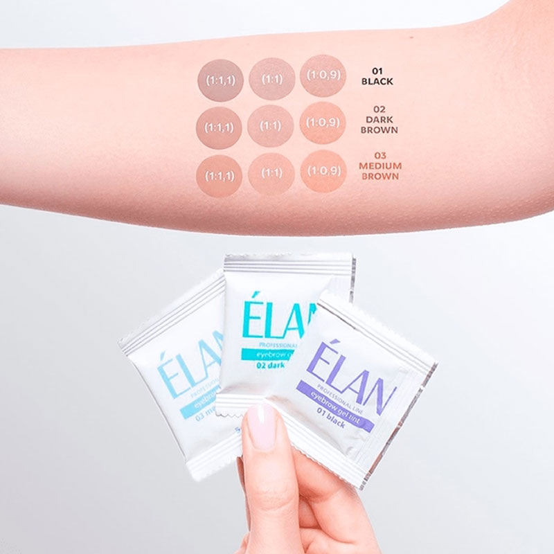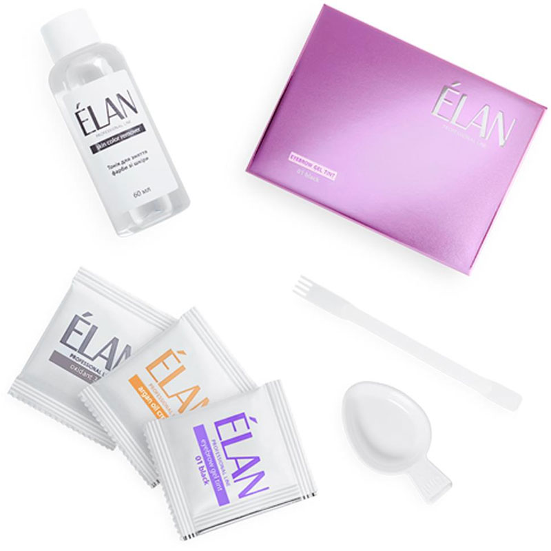 Гель фарба Elan для брів і вій "ÉLAN" — засіб з унікальною формулою і технологією нанесення, які запатентовані і не мають аналогів у світі. Її особливість — використання барвника з доглядаючими компонентами для зволоження волосків і шкіри. Завдяки використанню етаноламіну як лугу, гель фарба Elan № дерматологічно безпечна і придатна для використання вагітними жінками за відсутності непереносимості до компонентів із складу. В лінійку продукції входить 3 кольори, які легко змішуються для отримання бажаного відтінку.