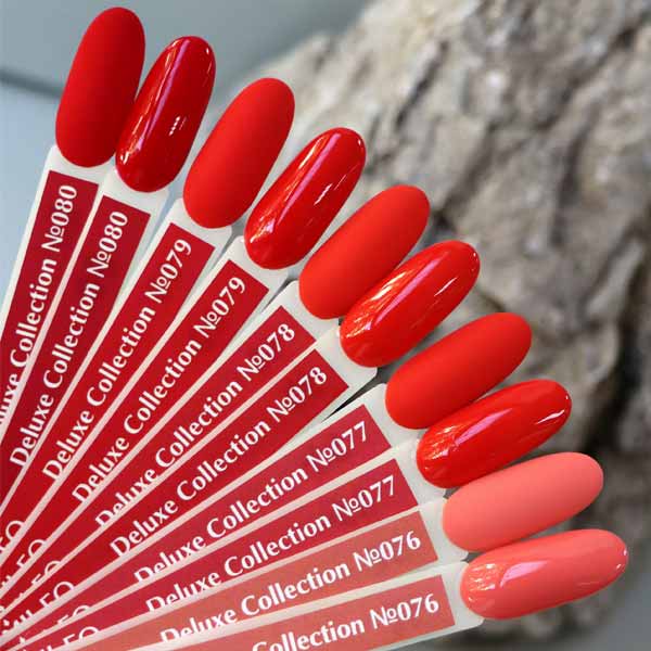 Komilfo Deluxe Series — це дуже пігментовані гель-лаки, щільно лягають, зносостійкі, зручні у нанесенні, самовирівнюються по нігтьовій пластині, легкорозчинні, ароматизовані та чудово поєднуються з продукцією інших виробників!