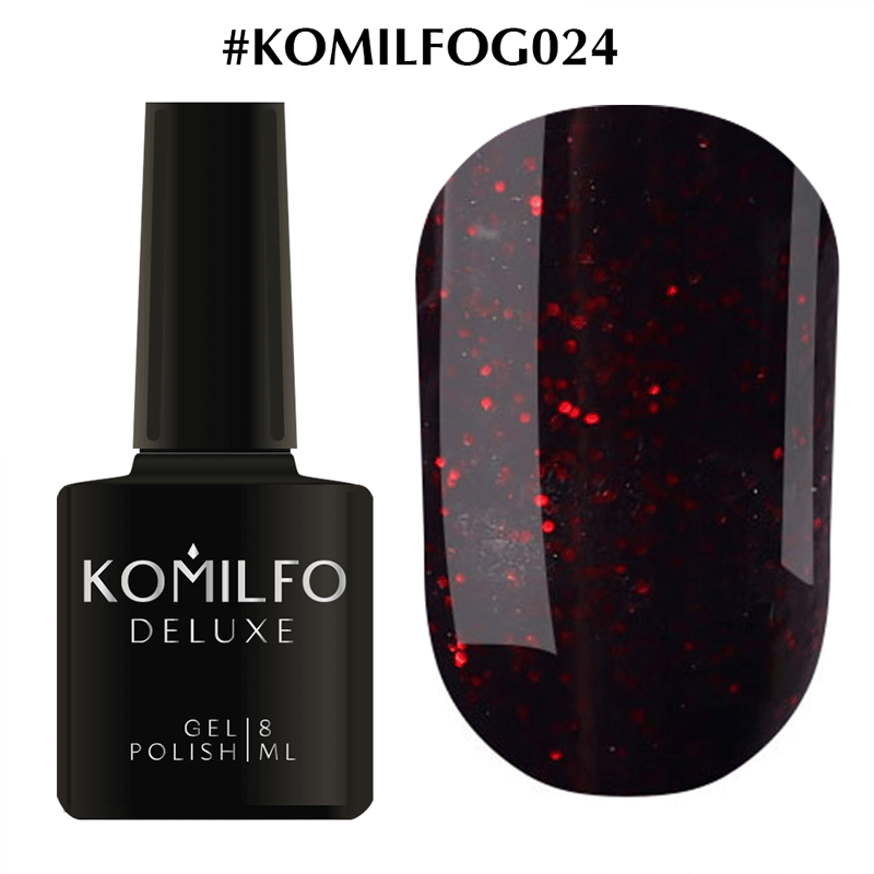Гель-лак Komilfo DeLuxe Series №G024 (чорний з червоними блискітками), 8 мл