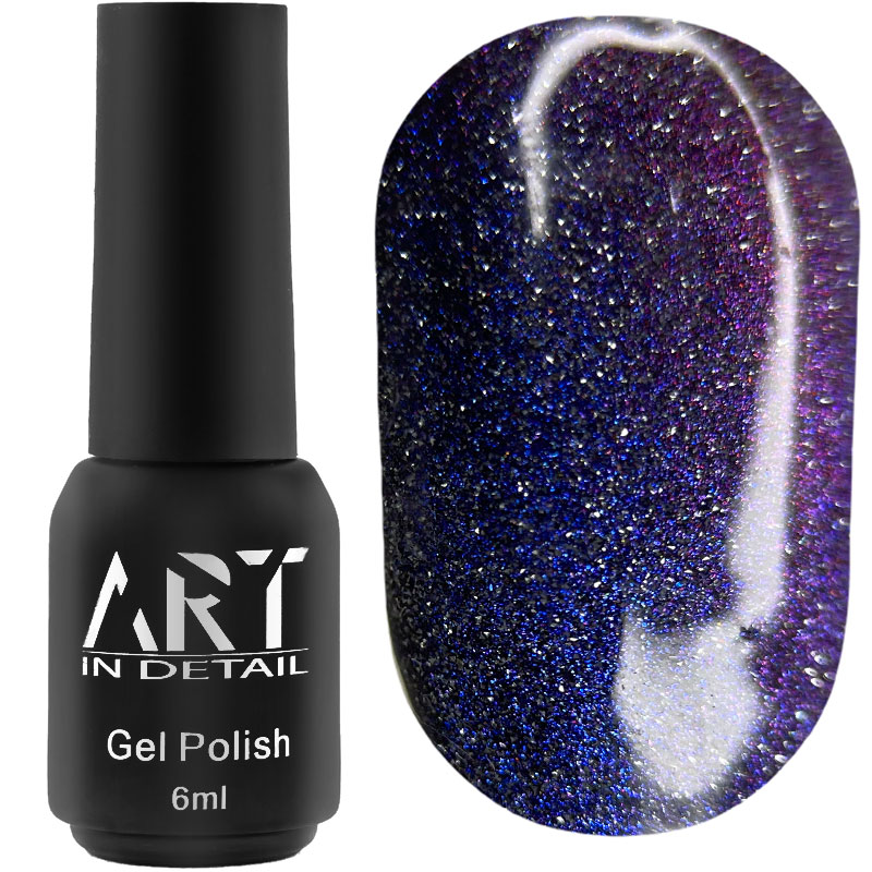 ART Flash Cat Chameleon - колекція магнітних гель-лаків, які містять тисячі дрібних блискіток-хамелеонів та світловідбиваючі частинки. Гель-лак має напівпрозору текстуру і для яскравості рекомендуємо використовувати на темну підкладку. При стандартному нанесенні ви отримаєте рівномірне мерехтіння, а для вираженої смуги, місячних і чарівних візерунків - використовуйте різні типи магнітів.