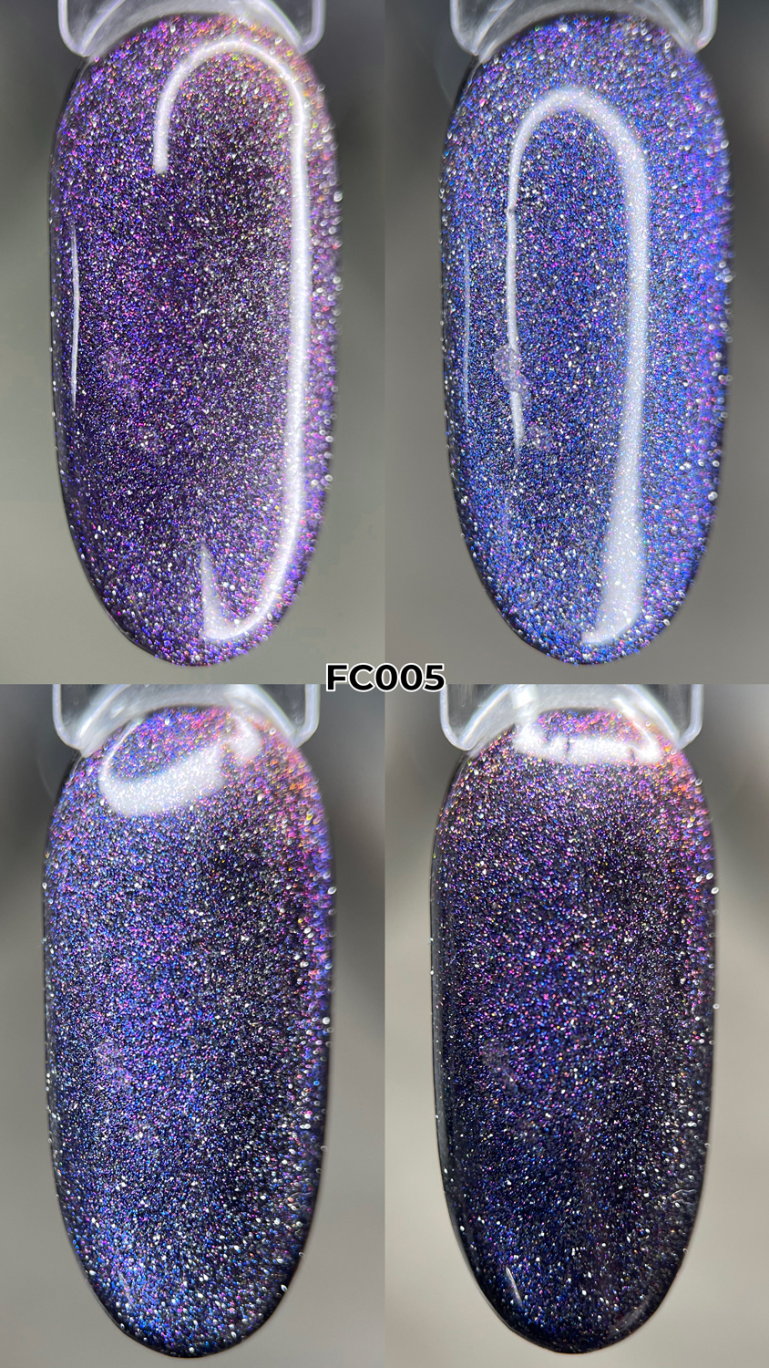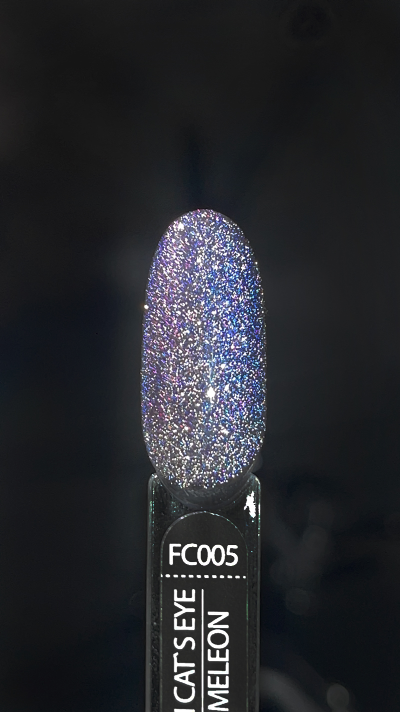 Унікальність колекції ART Flash Cat Chameleon в тому, що при попаданні яскравих променів у темному приміщенні - частки, що відбивають світло, розіллються яскравим сяйвом на ваших нігтях. При стандартному освітленні покриття буде грати в променях світла і переливатися, залежно від кута нахилу.
