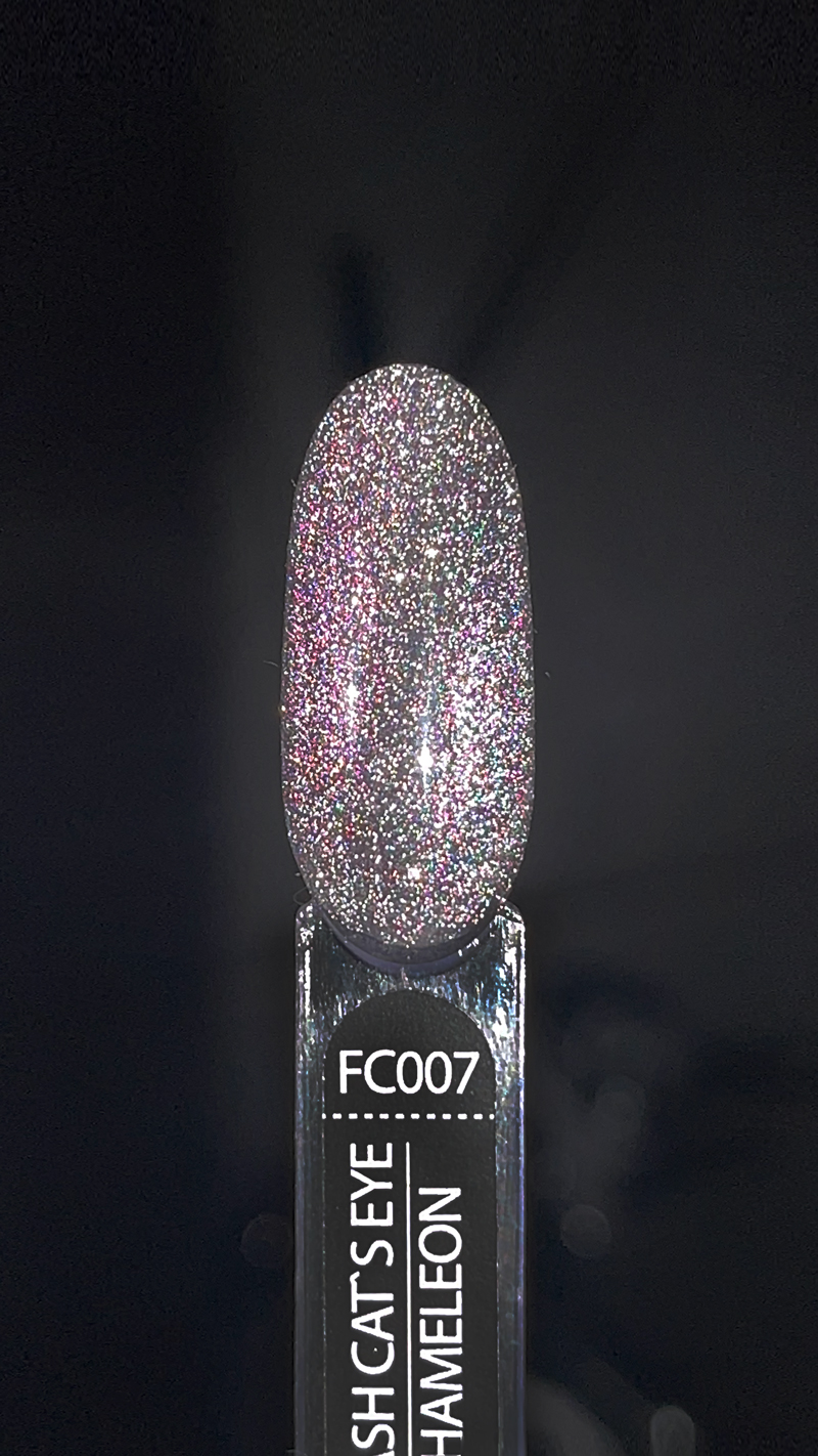 Унікальність колекції ART Flash Cat Chameleon в тому, що при попаданні яскравих променів у темному приміщенні - частки, що відбивають світло, розіллються яскравим сяйвом на ваших нігтях. При стандартному освітленні покриття буде грати в променях світла і переливатися, залежно від кута нахилу.