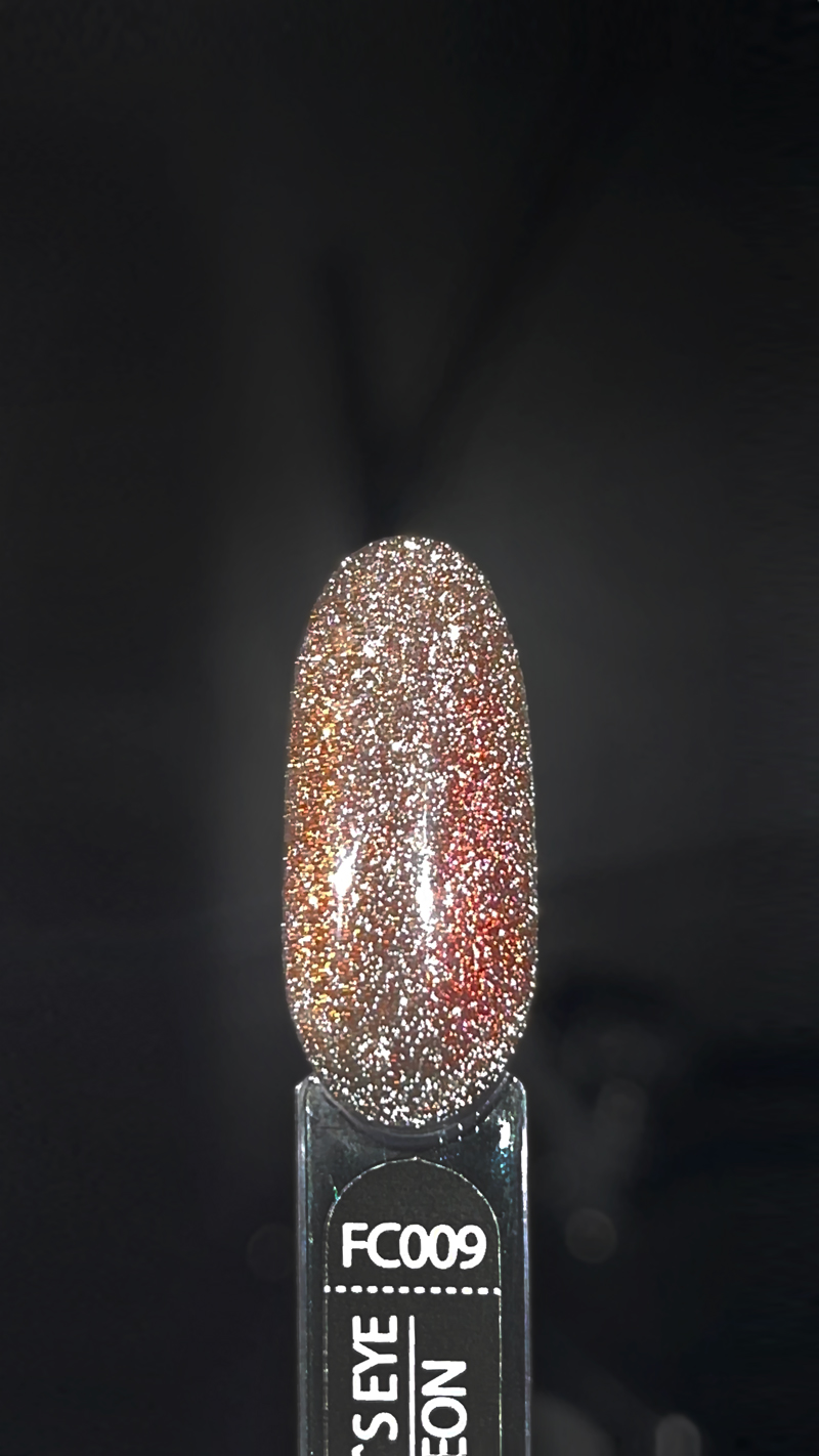 Унікальність колекції ART Flash Cat Chameleon в тому, що при попаданні яскравих променів у темному приміщенні - частки, що відбивають світло, розіллються яскравим сяйвом на ваших нігтях. При стандартному освітленні покриття буде грати в променях світла і переливатися, залежно від кута нахилу.