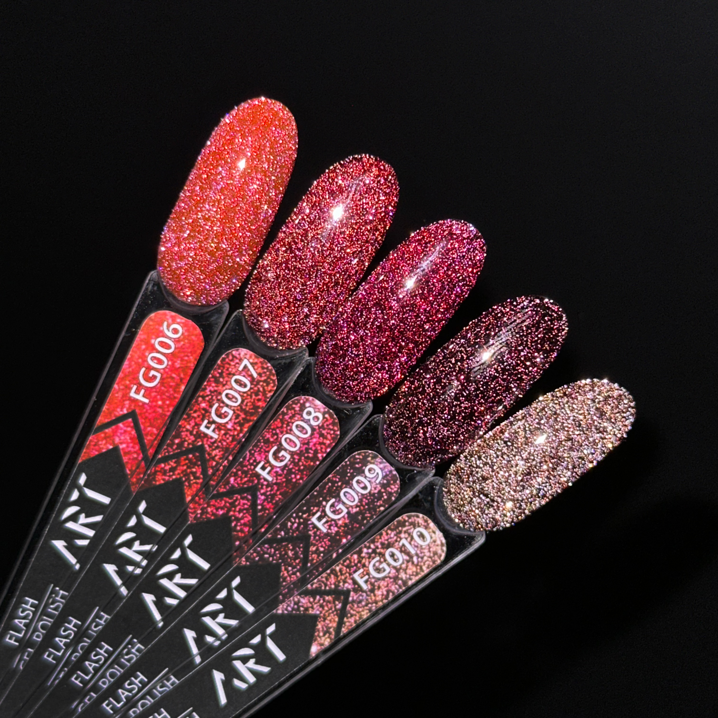 ART Flash Gel Polish - колекція світловідбиваючих гель-лаків, яка переносить у світ неймовірного блиску і магії світла! Ця колекція створена для тих, хто прагне бездоганного манікюру з неперевершеним сяйвом при будь-якому освітленні.