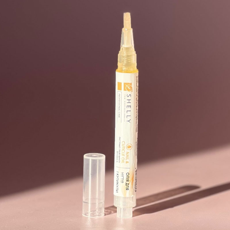 Олія для нігтів та кутикули Shelly™ стане незамінним помічником як для досвідченого майстра в салоні, так і домашнього використання. Має легку олійну текстуру та приємний цитрусовий аромат. Екстракт грейпфрута, вітамін А та комплекс масел забезпечують інтенсивне зволоження кутикули та бічних валиків та зміцнення нігтьової пластини. При регулярному використанні масло усуває сухість шкіри, нігтьова пластина стає еластичнішою, нігті - менш ламкими.