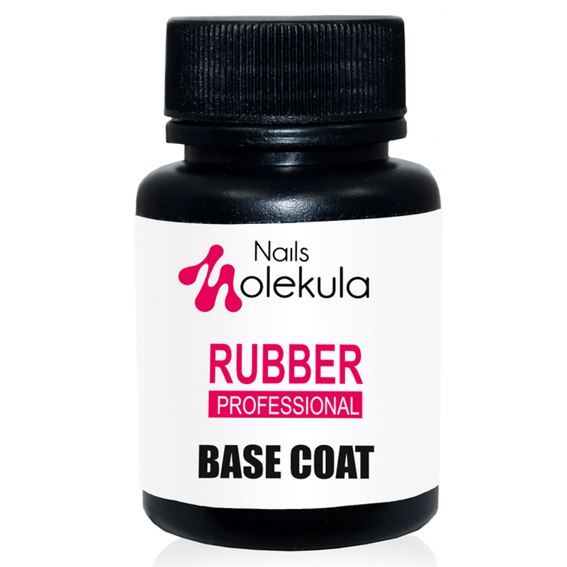 Molekula Rubber Base Professional - каучукова основа для гель-лаку легка в нанесенні та економічна. Базу достатньо нанести на один тонкий шар для вирівнювання поверхні нігтів. Створює стійке еластичне гумове покриття. Унікальна хімічна формула дозволяє гель-лаку добре та легко наноситися. Самовирівнююча основа створює гладку поверхню і забезпечує міцне зчеплення нігтьової пластини з шаром гель-лаку. Консистенція бази середньої в'язкості має дисперсійний (липкий) шар.