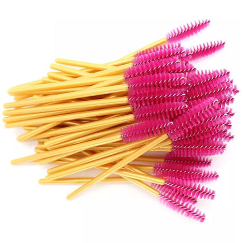 Щіточка для брів та вій пряма, малиново-золота, 50 шт.
