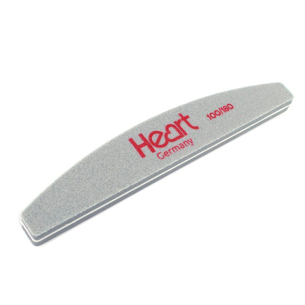 Шліфувальник для нігтів Heart 100/180 Half - інструмент з набагато більш делікатним і м'яким, ніж у традиційної пилочки, абразивом. Використовується в салонному і домашньому нейл-догляді на етапах шліфування штучних нігтьових пластин, а також для підготовки натуральних до процедури нарощування, нанесення гель-лаків, а також для їх вирівнювання в разі наявності глибоких борозенок і інших вад поверхні. Шліфувальник щільний, зручний, робочі боку різні по жорсткості.