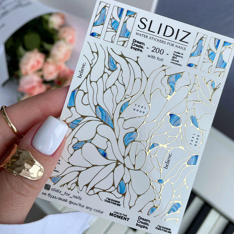 Слайдер-дизайн - зручний, красивий і доступний нейл-декор, який успішно відтворює на нігті художні візерунки, малюнки та композиції. Він складається з тонкої еластичної плівочки з малюнком і паперової підкладки. Завдяки високій якості та чіткості дизайн зі слайдерами мало чим відрізняється від виконаного пензликом та фарбами, дуже часто перевершує його за акуратністю, виглядає ефектно та стильно. При цьому процес створення такого манікюру не забирає багато часу та не потребує художніх навичок. Крапелька терпіння та гарні малюнки на нігтиках доставлять вам море позитивних емоцій! Швидко, просто та яскраво!