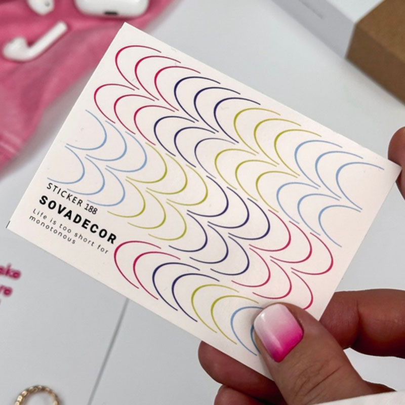 Слайдер-дизайн SOVA відрізняються насиченістю кольору та неймовірно крутими дизайнами. Основа складається з ультра тонкої полімерної плівки на паперовій основі. Плівка легко відокремлюється від підкладки після розмочування у воді, дуже пластична і за рахунок цього ідеально повторює форму нігтя, без будь-яких зусиль ви можете відкоригувати зображення. За умови правильного застосування та дотримання інструкцій, шкарпетка гарантована до корекції.