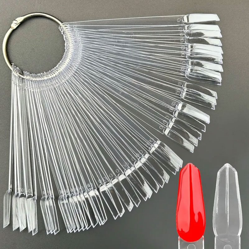У наборі йде 50 тіпс, які скріплені за допомогою металевого кільця, що дозволяє тримати всі тіпси в одному місці, але при цьому їх зручно показувати клієнту.