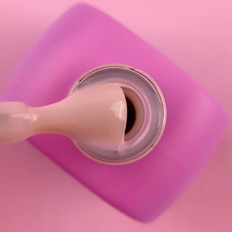 - Для адгезії нанесіть Rubber base тонким шаром на всю нігтьову пластину близько до кутикули та бокових валиків.