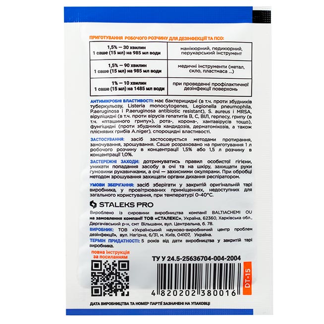 Универсальное средство-концентрат для дезинфекции NANOsteril STALEKS PRO 15 мл