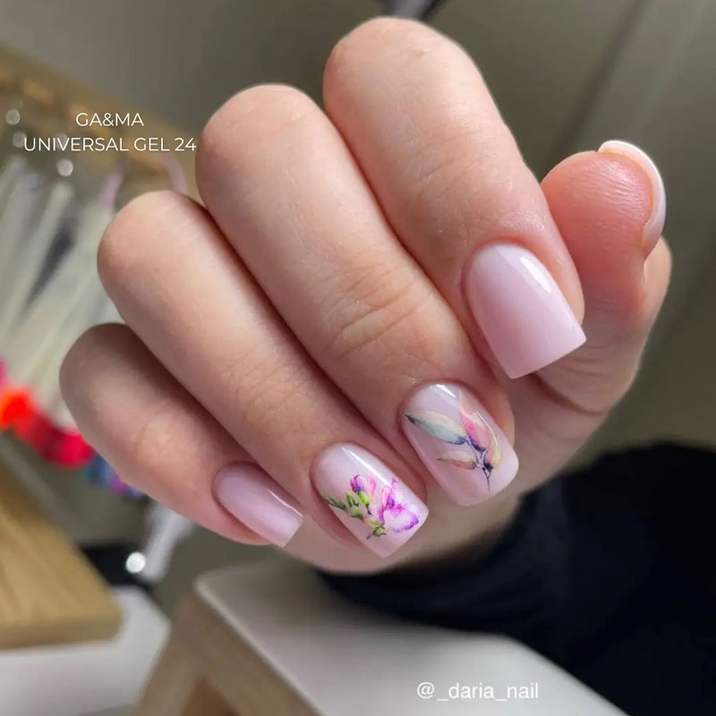 Universal gel - жидкий по консистенции, после полимеризации твердее базы, но мягче других гелей. Имеет большую палитру, позволяющую ускорить процедуру.