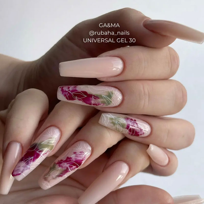 Universal gel - жидкий по консистенции, после полимеризации твердее базы, но мягче других гелей. Имеет большую палитру, позволяющую ускорить процедуру.