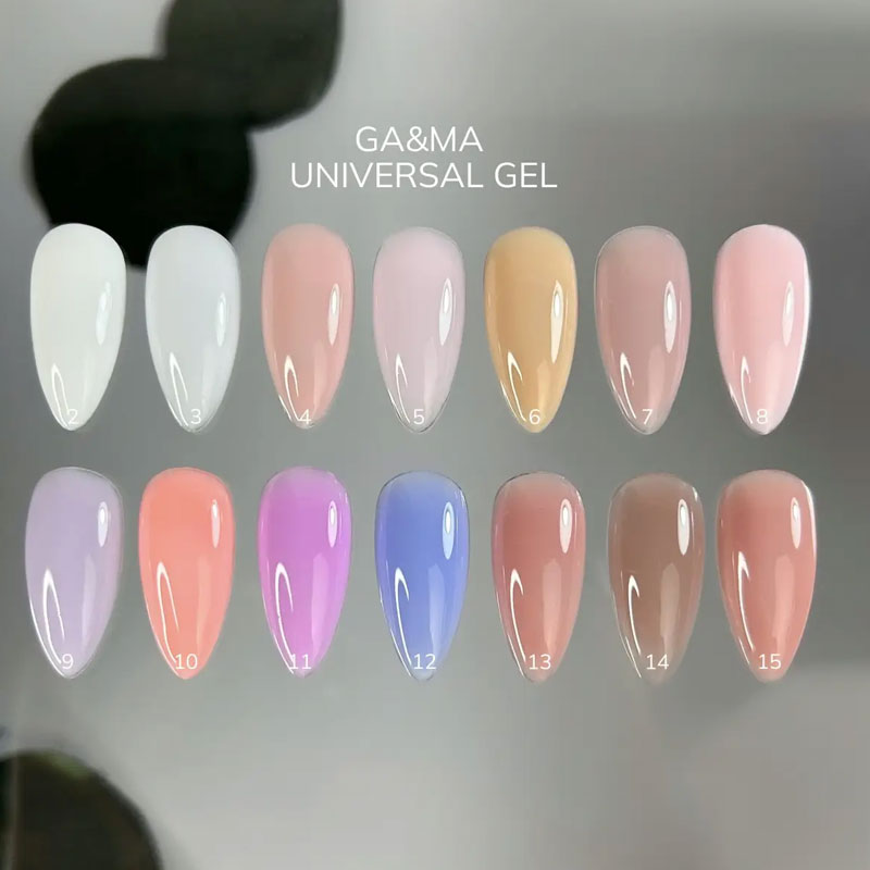 Universal gel - жидкий по консистенции, после полимеризации твердее базы, но мягче других гелей. Имеет большую палитру, позволяющую ускорить процедуру.