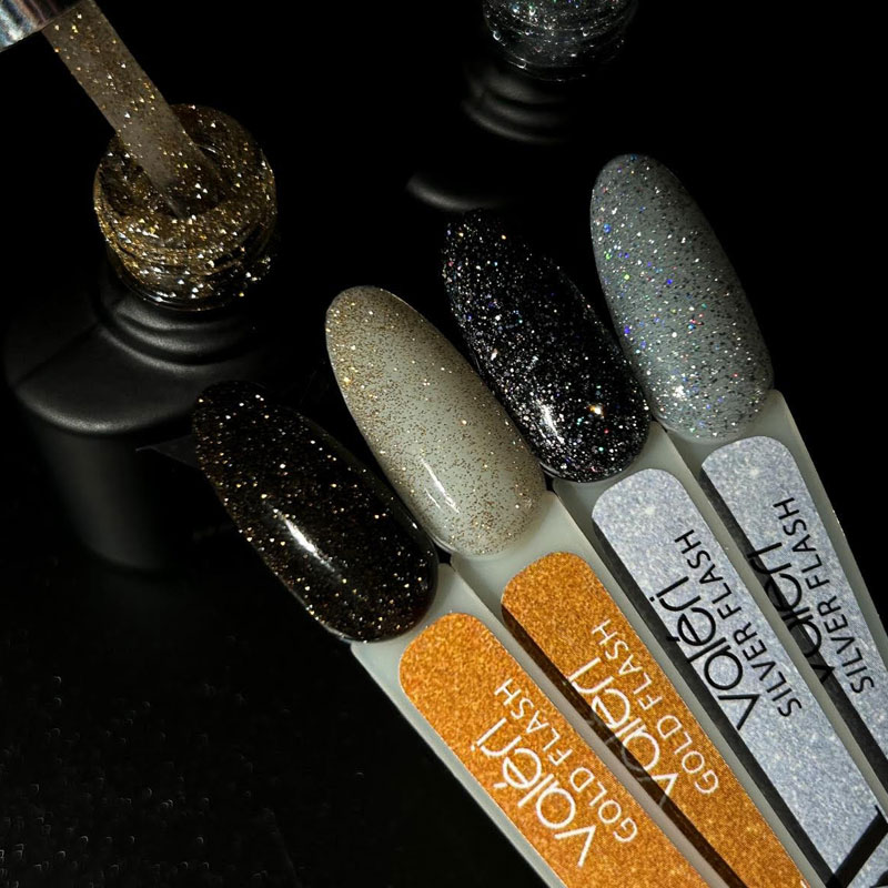 Valeri Top Silver Flash – топ для гель-лака без липкого слоя со светоотражающим эффектом. Содержит серебряные мерцающие частицы, которые придают покрытию переливчатое сияние. Подходит для нанесения на любой цветной гель-лак и камуфлирующую базу.