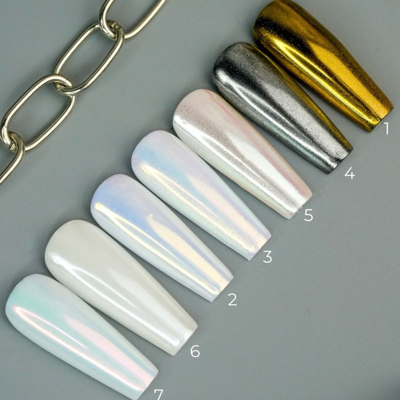 Палитра из 7 цветов, которые ложатся равномерно и дают зеркальный эффект при покрытии.